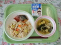【今日の献立】・秋の香りごはん・牛乳・鯖の辛味焼き・すまし汁 昨日は秋分の日でした。冬に向かって、日ごとに昼が短く夜が長くなります。まだまだ暑い日が続きますが、暦の上では秋となります。 今日は、栗やイチョウの葉を模った人参を使い「秋の香りごはん」を作りました。もち米を入れたのでモチモチしたおいしい炊き込みご飯になっています。 »続きを読む