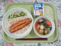 【今日の献立】・麦ごはん・牛乳・みそカツ・冬瓜スープ・磯の香和え 今日は愛知県の料理です。 「みそカツ」は、特製の味噌ダレをかけた豚カツです。愛知県の味噌は、独特の旨味とコクがあり、濃い色をしています。砂糖を加えた甘辛いタレにしました。 スープには、愛知県の特産物「冬瓜」を使いました。「冬瓜」は漢字で冬の瓜(うり)と書きますが、夏の野菜です。冬まで日持ちすることから...»続きを読む