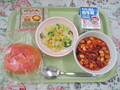 【今日の献立】・フラワーパン・牛乳・チリコンカン・ミックスサラダ・セレクト給食(伊予柑ゼリー、またはプリンタルト) さいたま市と友好姉妹都市を結んでいる都市にちなんで、メキシコの料理を作りました。チリコンカンは、豆と挽き肉の煮物です。チリパウダーという香辛料を使ってスパイシーに仕上げます。 また、給食週間としてセレクト給食を取り入れました。選んだデザートを間違いのないように配...»続きを読む