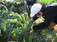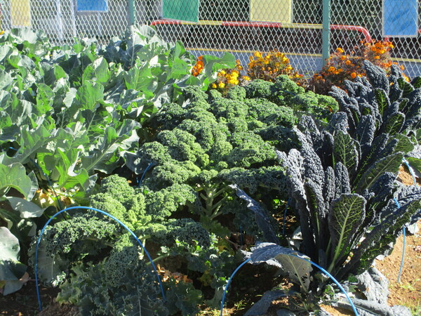 ビーンズサラダには「カリーノケール」という、ヨーロッパ野菜を使いました。今回、なかよし学級の皆さんが育てたものが、良質でとてもたくさん収穫できたので使わせていただきました。