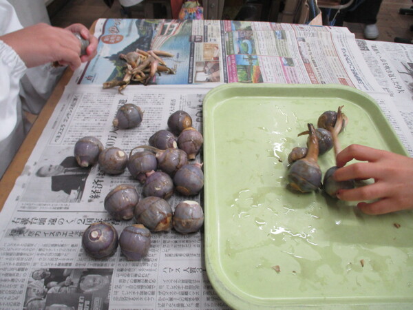 6年3組)くわいチップスの塩けがちょうどよくておいしかったです。水菜ののりあえの、歯ごたえがよくておいしかったです。