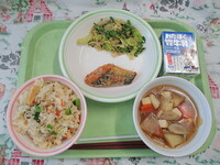 4年1組)小松菜入りじゃこごはんが、色どりもあり、おいしかったです。