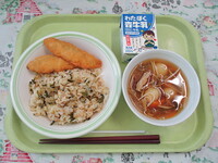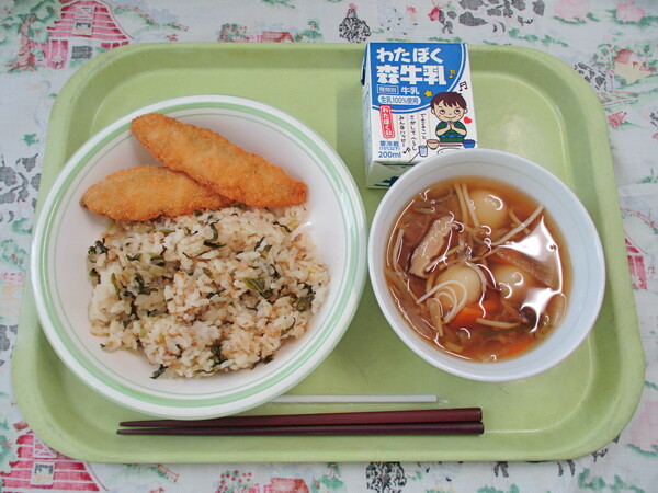 【今日の献立】高菜ごはん・牛乳・小いわしフライ・せんだご汁